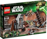 Halte Count Dooku™ auf, bevor er Geonosis™ mit den Plänen für den Todesstern verlassen kann! Nutze die Macht, um Jedi-Meister Yoda™ zu helfen, in die Luft springen, dem Macht-Blitz des Sith Lords auszuweichen und Dooku zur Verantwortung zu ziehen! Pass auf, dass er das Lager nicht zerstört und auf seinem Speeder entkommt. Enthält 4 Minifiguren mit Ausrüstung: Count Dooku, Yoda, Poggle the Lesser und Dookus Pilot Droid™.