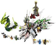 Nun ist es soweit: Gut und Böse treffen aufeinander. Wer wird der Stärkere sein? Können die Ninjas den Untergang von Ninjago verhindern? Der Mächtige Schlangenmeister wurde zum Leben erweckt und hat nur ein Ziel: Die Herrschaft an sich zu reißen. Kann der sagenumwobene Grüne Ninja auf dem Rücken des vierköpfigen Drachen den bösartigen Gegner besiegen? Wird es Lord Garmadon gelingen, sich die Macht der 4 goldenen Waffen des Spinjitzu zunutze zu machen, um die mächtige Schlange zu vernichten? Und was wird aus Sensei Wu? Kann Jay die bösen Schlangengeneräle Acidicus, Skalidor und den Schlangenjäger Chokun besiegen und seinen Meister aus dem heimtückischen Gefängnisturm befreien? Der Ausgang dieses entscheidenden Kampfes zwischen Gut und Böse liegt allein in deiner Hand! Enthält 7 Minifiguren: Lloyd ZX (Grüner Ninja), Jay ZX, Sensei Wu, Lord Garmadon, Acidicus, Skalidor und Chokun. Das Set enthält vierköpfigen Drachen mit beweglichen Köpfen, Spuckfunktion und schlagenden Flügeln, den Mächtigen Schlangenmeister, den Gefängnisturm, Reißzahnklinge der Hypnokobras mit blauer Gegengift-Kapsel, 4 goldene Waffen, 7 normale Waffen.