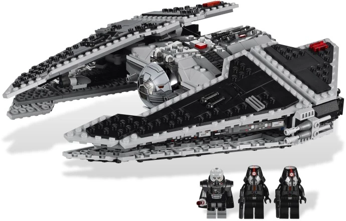 - Mit Cockpit zum Öffnen und einklappbarem Kontrollfeld, einklappbaren Flügeln, 2 mittleren Blastern, dem Lichtschwert von Darth Malgus, 4 Raketen und einer Öffnung am hinteren Ende des Schiffskörpers mit Platz für 2 Minifiguren