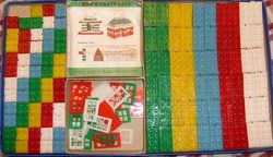 Auf den ersten Blick, waren die kleinen Plastiksteine den heutigen schon recht ähnlich, doch bei genauerer Betrachtung fallen dann doch sehr schnell gravierende Unterschiede auf. Zu nennen wäre da z.B. die Farbgebung. Abgesehen davon, das es damals die Steine nur in den Farben weiß, rot, gelb, grün und blau gab, waren diese meißt nicht wirklich Uni-Farben sondern beinhalteten (je größer die Steine wurden) auch Teile anderer Farben.