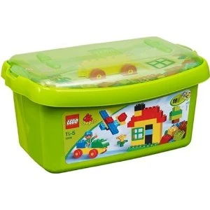 Dieser stabile und wieder verwendbare Aufbewahrungsbehälter mit transparentem Deckel enthält eine Anleitung für Bau-Ideen, viele kindersichere LEGO® DUPLO® Basissteine, und zahlreiche Spezialelemente für Autos, Flugzeuge, Häuser und vieles mehr. LEGO DUPLO Steine bieten endlose Möglichkeiten