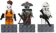 Enthält 3 authentische LEGO® Star Wars™ Minifiguren: ARF Trooper™, Aurra Sing™ und Embo™, jede befestigt auf einem 2x4 LEGO Stein-Magneten