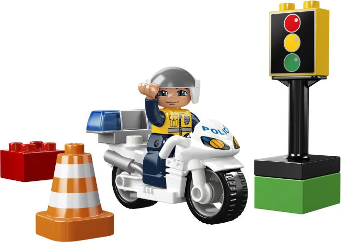 - Polizeimotorrad, Verkehrsampel, Verkehrskegel und LEGO DUPLO Stein als Zubehör enthalten