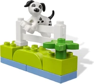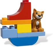 - Enthält braune Katze, weißen Hund, Futterschachtel, Teller, Blumen, Fenster in Holzoptik, Zaun und verschiedene LEGO® DUPLO® Grundsteine
