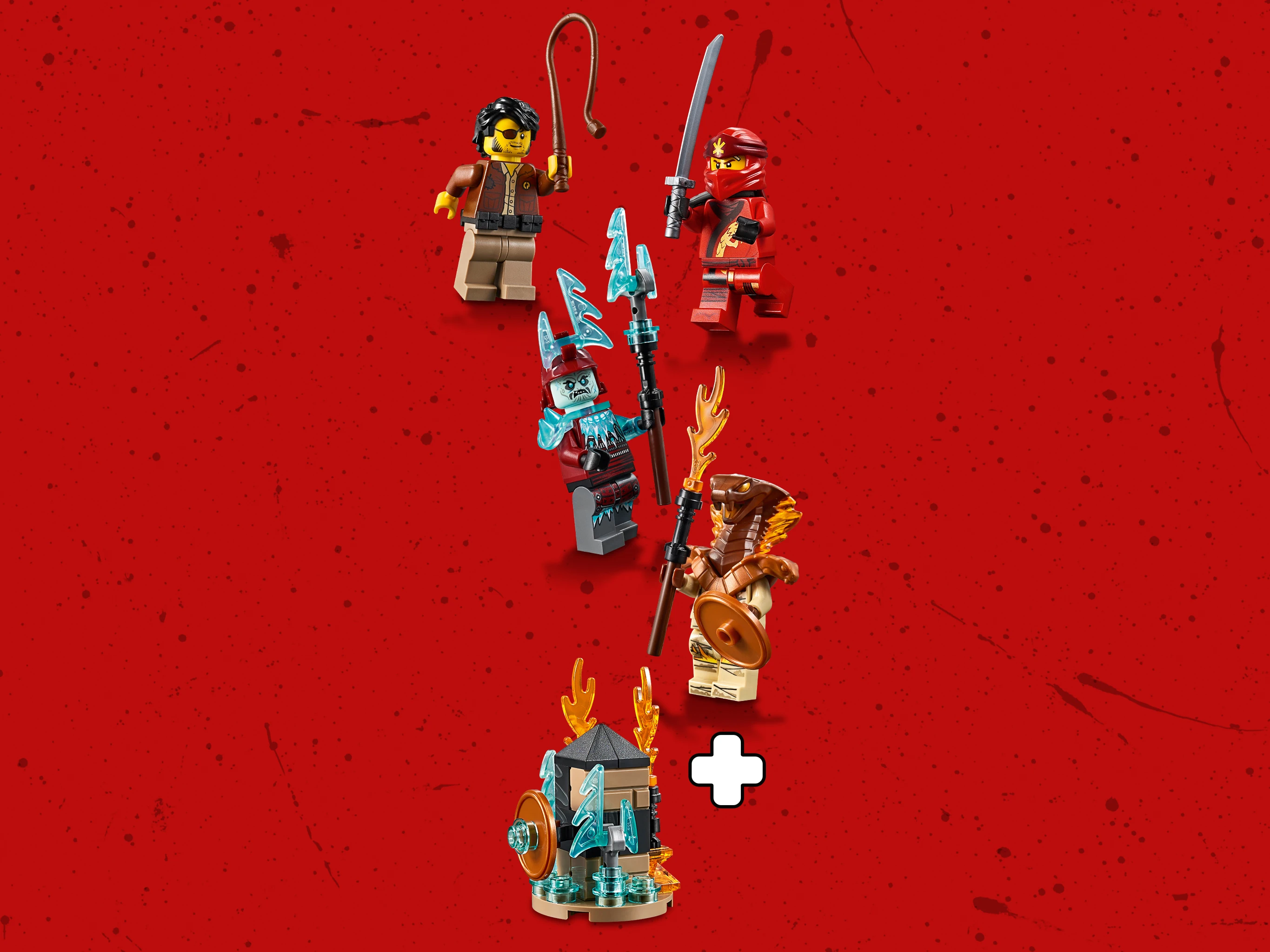 Les plus jeunes vont adorer mettre en scène des combats opposant le pyro-destructeur et l'archer blizzard au héros ninja Kai dans sa tenue Legacy, ainsi qu'à une nouvelle figurine (nouveauté de juin 2019) : le légendaire explorateur Clutch Powers. L'ensemble inclut également une arme pour chaque figurine, ainsi qu'un présentoir avec des armes et des accessoires supplémentaires. Un cadeau idéal que les plus jeunes peuvent combiner avec leurs jouets de construction LEGO NINJAGO, pour des jeux de rôle créatifs.