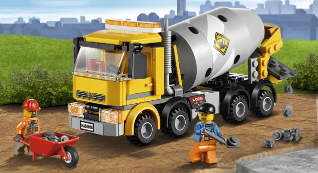 60018 La bétonnière est un ensemble City sorti en 2013. Il contient une bétonnière, un chauffeur et un ouvrier.