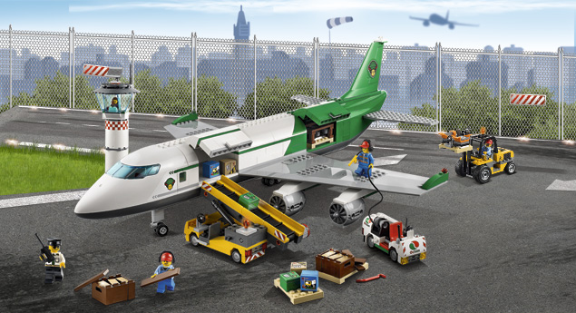 - Comprend un avion cargo, une tour de contrôle, un tapis roulant, un camion citerne Octan, un chariot élévateur, un tout terrain à construire