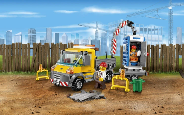 60073 Le camion grue est un ensemble City sorti en janvier 2015. Il contient un camion, une remorque, des toilettes de chantier, des barrières, un chauffeur et un ouvrier.