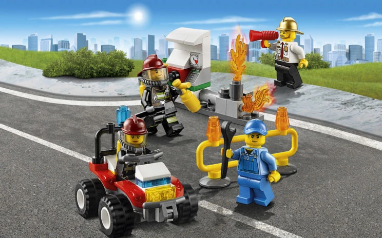 60088 Ensemble de démarrage Pompiers est un ensemble City sorti en janvier 2015. Il contient un quad, une pompe à essence en feu, une barrière, trois pompiers et un pompiste.