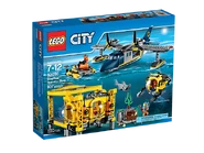 60096 La base opérationnelle en haute-mer est un ensemble City sorti en juin 2015. Il contient une base, un hydravion, un sous-marin, un sous-marin de recherche, une grotte, un pilote, un plongeur en profondeur, un plongeur, deux explorateurs sous-marins et un requin.