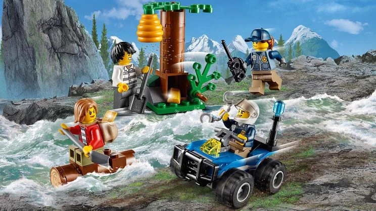 60171 L'évasion des bandits en montagne est un ensemble City sorti en décembre 2017. Il contient un policier, une policière, un voleur, une voleuse, un quad de police, un rondin, un arbre avec une cachette et une ruche.