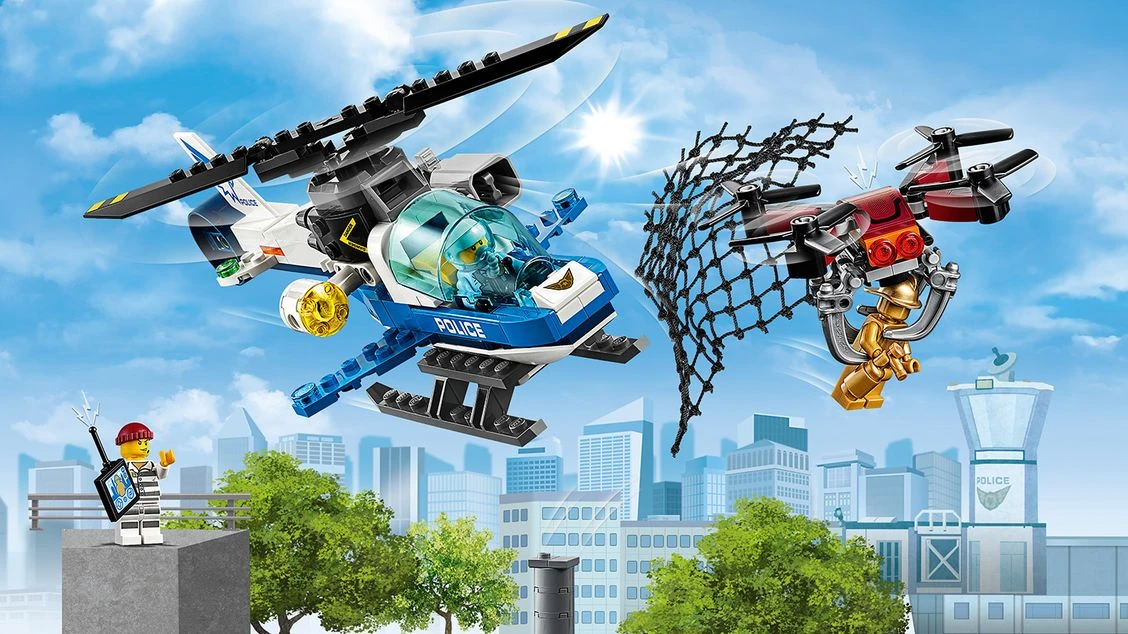 60207 Le drone de la police est un ensemble City sorti en décembre 2018. Il contient un policier, un voleur, une statue sur un piédestal, un hélicoptère de la police et un drone avec sa télécommande.