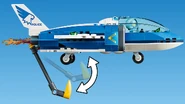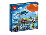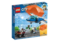 60208 L'arrestation en parachute est un ensemble City sorti en décembre 2018. Il contient deux policiers, deux voleurs, un jet de la police, une moto de police, un parachute et un buggy d'évasion.