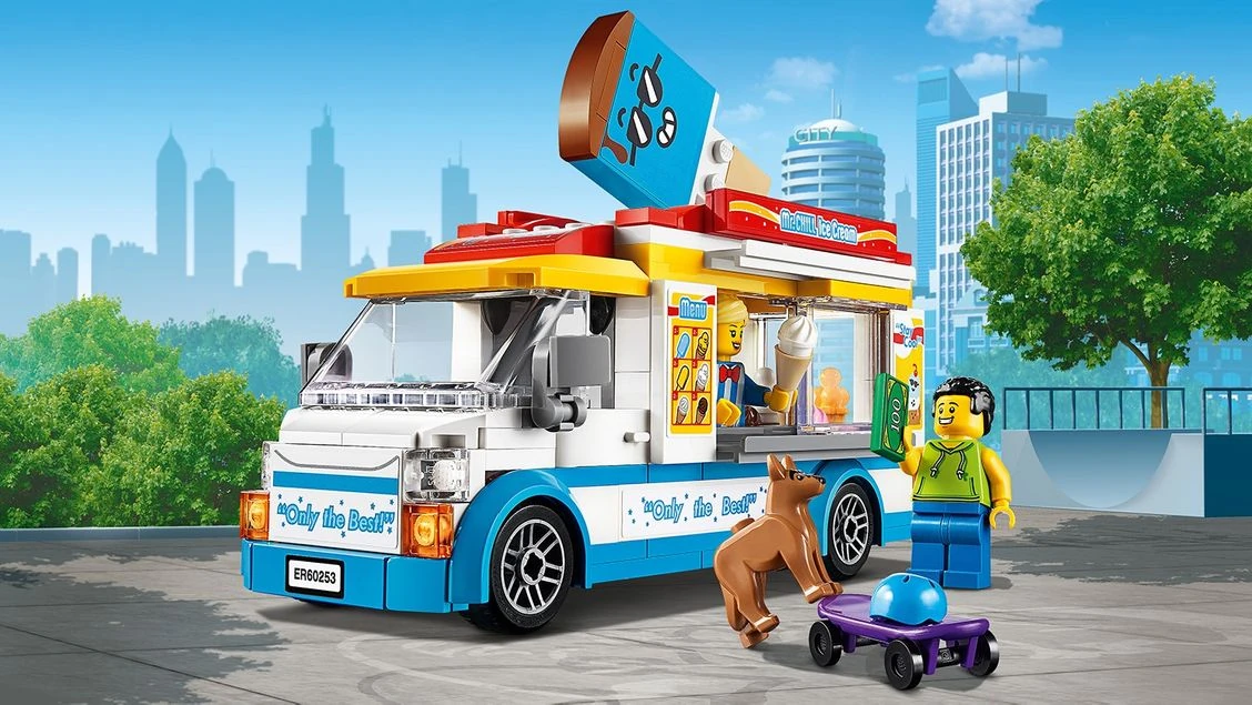 60253 Le camion de la marchande de glaces est un ensemble City sorti en janvier 2020. Il contient une marchande de glaces, un skateur, un chien, un camion de glaces et un skateboard.