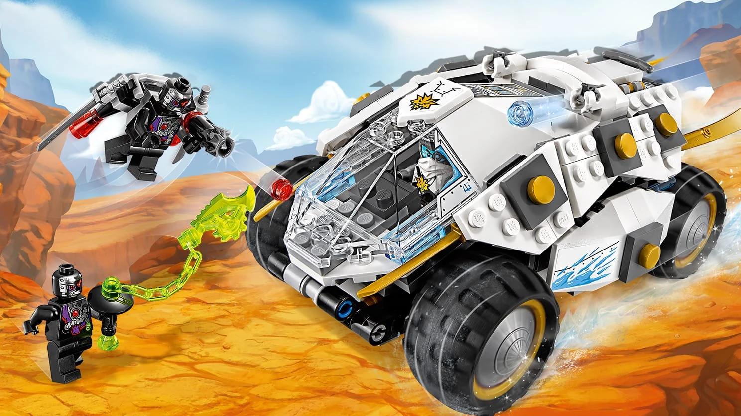 - Le TNT inclut aussi le planeur détachable de Zane avec des lames Ninjas dorées.