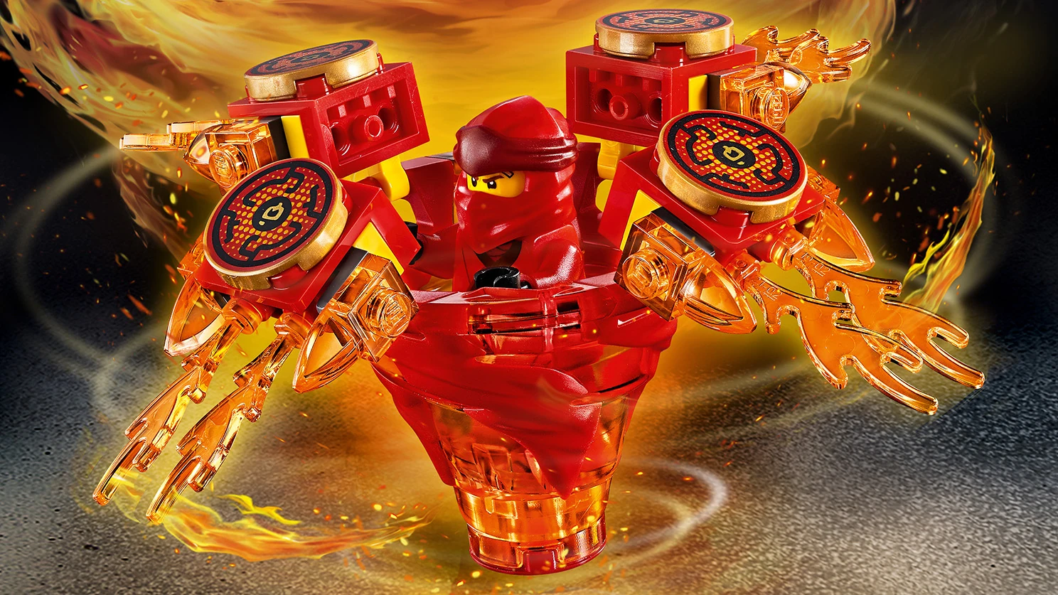 - La toupie Spinjitzu Kai Tornade de feu LEGO® NINJAGO® contient un nouvel élément disponible pour janvier 2019 et 3 accessoires différents pour les modes attaque, défense et vitesse.