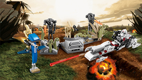 - Comprend un speeder avec un nouveau canon à ressorts, un STAP et un poste de défense droïde