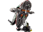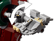 Doté d'une poignée pour le faire voler, il présente un cockpit qui s'ouvre pour les figurines LEGO, des ailes rotatives, 2 fusils à tenons et 2 canons doubles pivotants (qui ne tirent pas). Ce set de qualité inclut les figurines LEGO de Boba Fett et du Mandalorien ainsi que des armes et une brique "carbonite" à placer dans le compartiment du vaisseau.