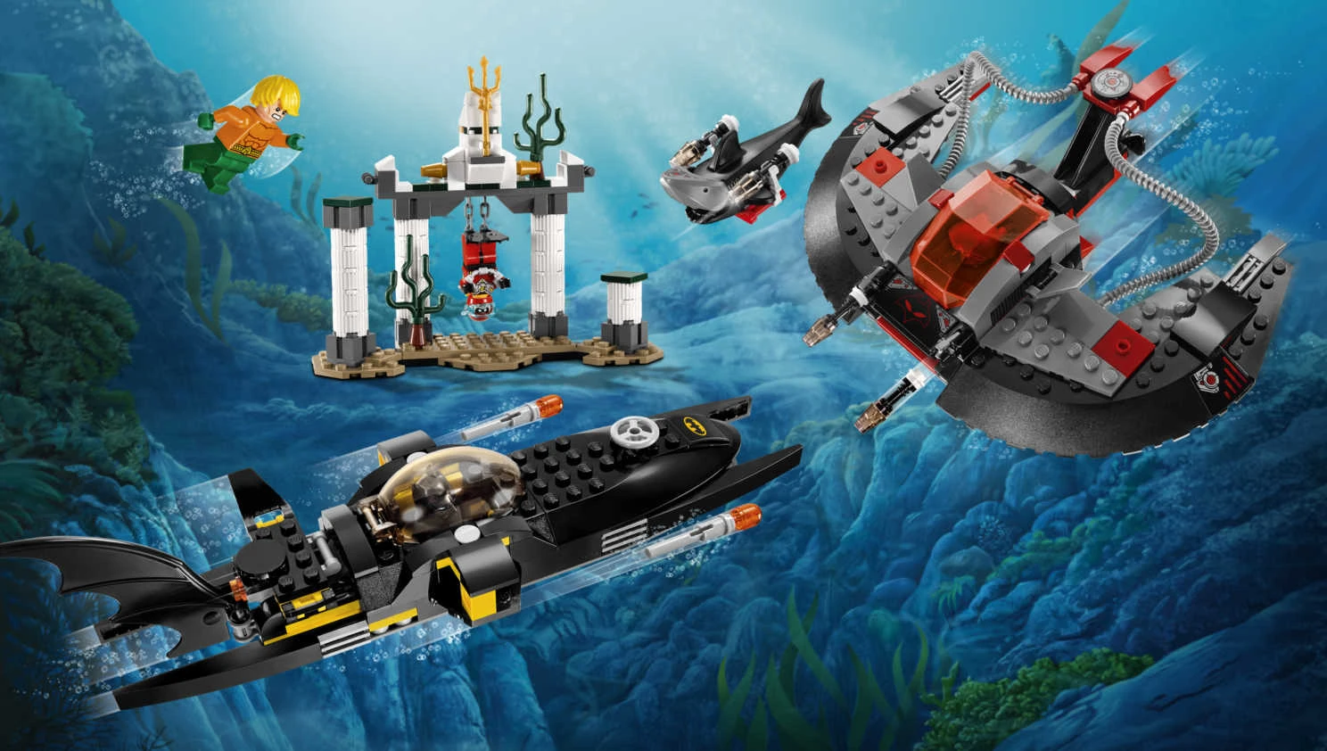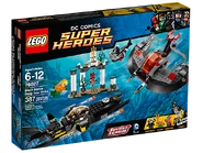 76027 L'attaque des profondeurs de Black Manta est un ensemble DC Comics Super Heroes Justice League sorti en janvier 2015. Il contient Batman, Robin, Aquaman, Black Manta, un robot requin, le Batsub, une soucoupe des mers et un temple en ruine.