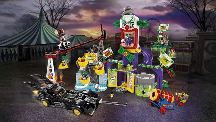 Le Joker et son équipe de malfaiteurs ont transformé le parc d'attractions de Gotham City en cauchemardesque Jokerland et emprisonné Starfire, Beast Boy et Robin. Pars à la rescousse avec Batman™ dans la redoutable Batmobile. Évite le canon et vise le robot clown avec les missiles. Le moment est arrivé pour une sérieuse action super-jumping pour neutraliser les malfaiteurs. Bam ! Renverse le Pingouin depuis son podium. Boum ! Lance un saut parfaitement visé pour libérer Robin de sa promenade en vélo à l'envers avec Harley Quinn. Paf ! Fais descendre Poison Ivy de sa branche qui se balance. Enfin, renverse le Joker de la bouche du clown dans la glissade et dans la salle du réservoir de poison ! Comprend 8 figurines et des accessoires assortis : Batman™, Robin, Beast Boy, Starfire, Le Pingouin, Le Joker, Poison Ivy et Harley Quinn.