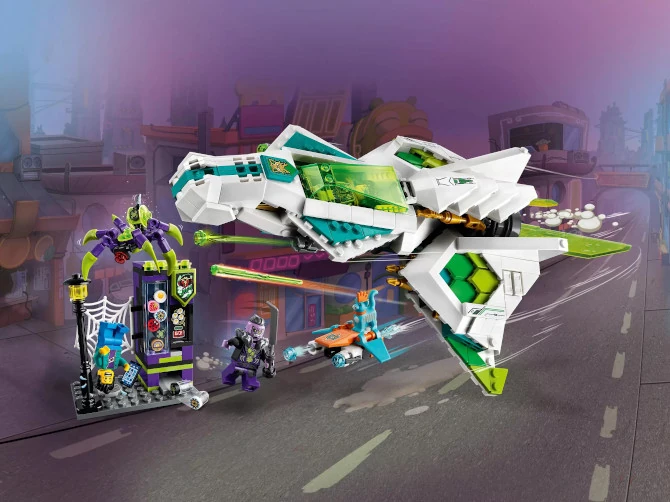 Le jouet inclut le jet Cheval-Dragon blanc de Mei doté de 2 fusils à ressort et 2 lance-tenons, 3 figurines et un personnage LEGO, ainsi qu'un distributeur fonctionnel, une araignée-robot articulée, un piège en toile d'araignée et un hoverboard lance-tenons. Aux côtés de Mei et de Mo le chat, les enfants libèrent un habitant des pattes de Huntsman, le chasseur de Spider Queen.
