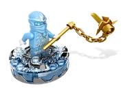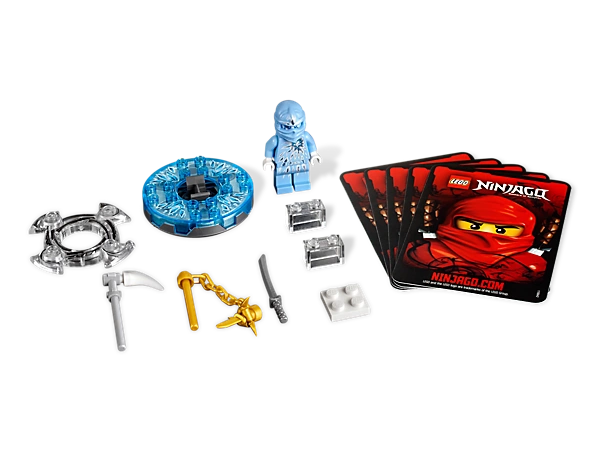 - Comprend une toupie de glace transparente, un anneau de vitesse argenté, des briques LEGO, une arme d'or, 2 armes normales, une carte personnage et 4 cartes combat.