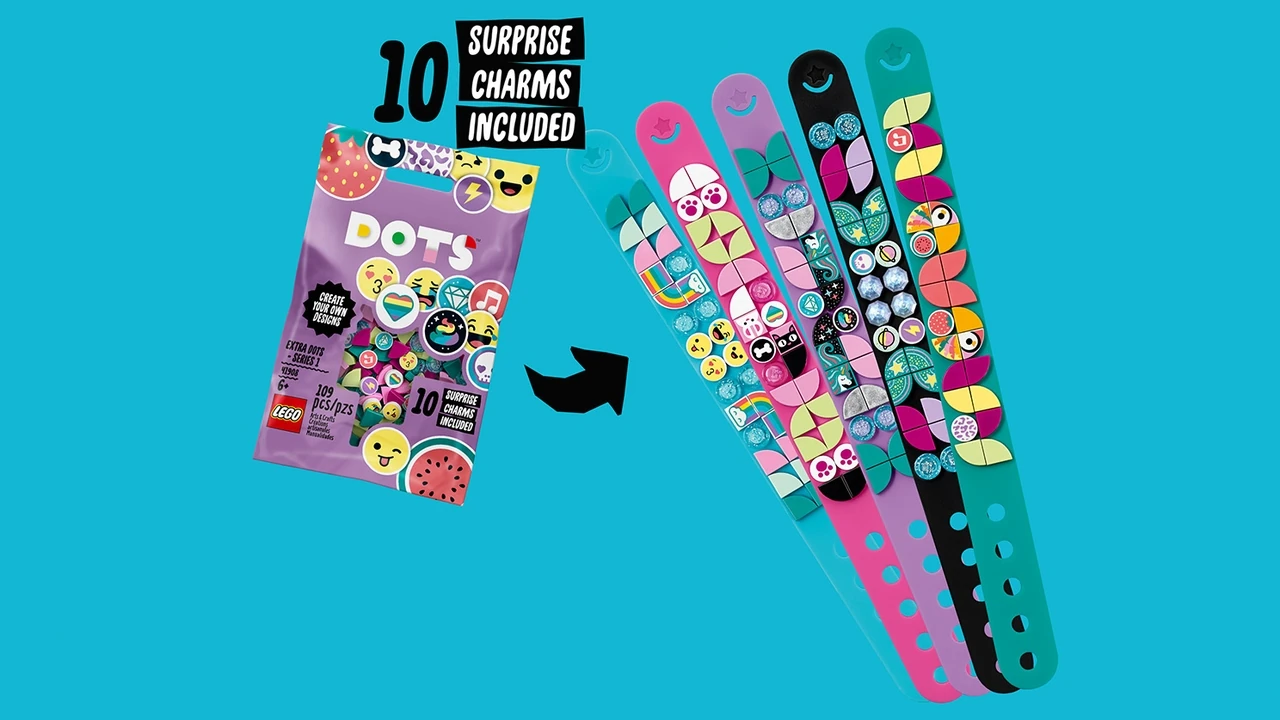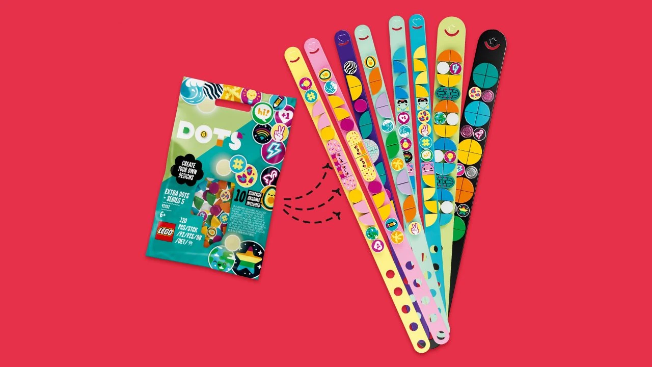 DOTS est un thème attendu initialement en 2019 et finalement introduit en 2020[1]. Il est basé sur la personnalisation d'objets à l'aide de motifs créés sur des bracelets ou des plaques avec des tuiles 1x1 unies ou imprimées, avec une grande variété de nouvelles pièces. Le thème a bénéficié d'une annonce cachée en 2019 dans le film La Grande Aventure LEGO 2 où la jeune Bianca est vue avec un bracelet et d'une annonce publique en janvier 2020 avec l'artiste Camille Walala qui a confectionné une maison de deux étages construite avec deux millions de briques à Londres[2].