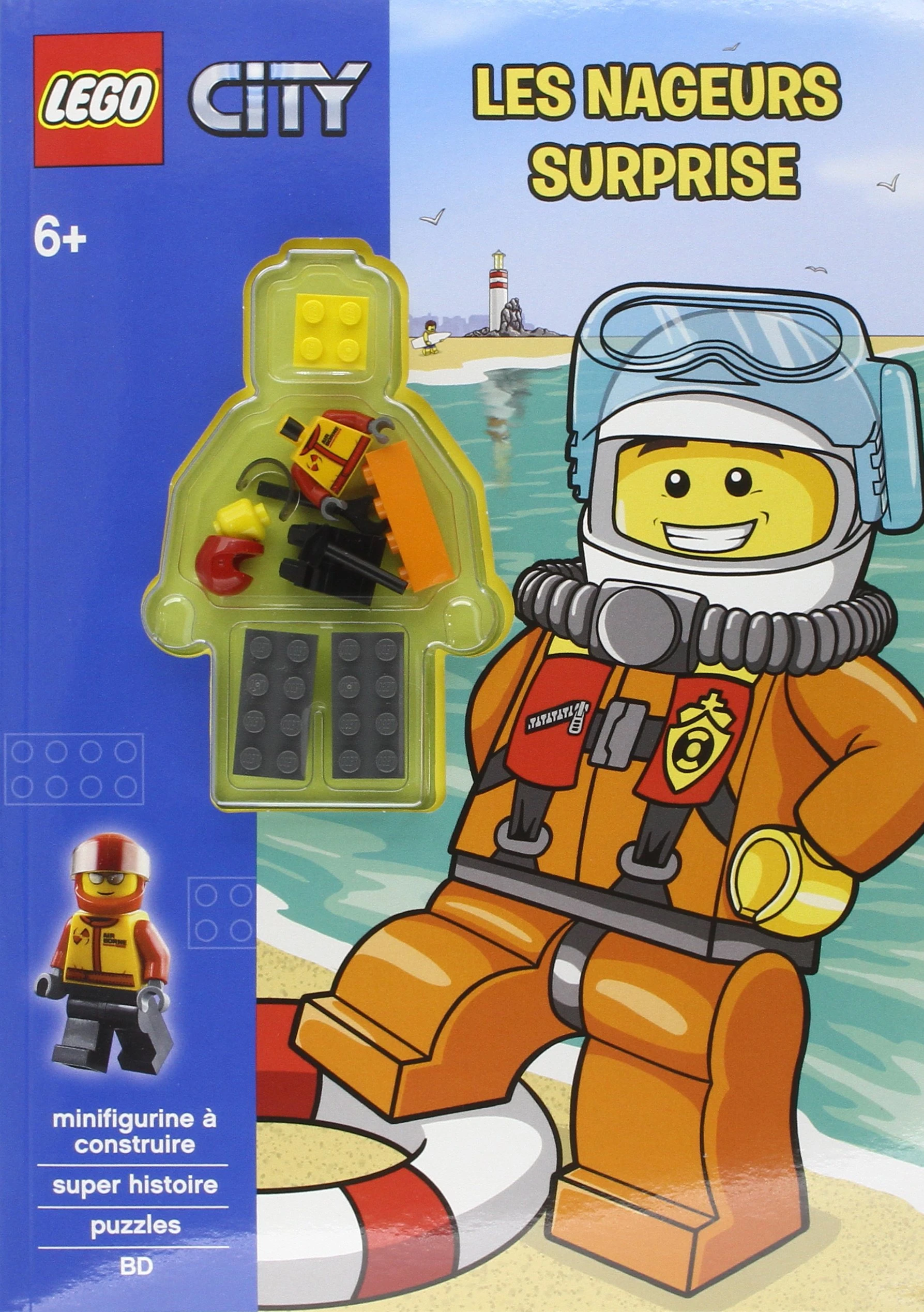 LEGO City : Les nageurs surprise est un livre d'activitésCity qui comprend une minifigurine de Jett Powers le pilote d'essai, une histoire illustrée (Les nageurs surprise), deux bandes dessinées (Enfant à bord ! et Requins malins) et des jeux.