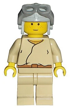 Episode I: The Phantom Menace | met grijze pilotenmuts en donkergrijze bril, geel gezicht met zwart-wit voor zijn ogen en mond, samen met de bruine printen voor wenkbrauwen en sproeten, gele handen, tan tuniek met donker bruine riem. | ||