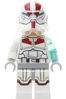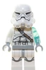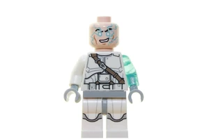 Het minifiguur heeft een witte helm, vleeskleurig dubbelzijdig gezicht met bezorgde blik, blauwe ogen en dichte mond, en met grijns met witte ogen, schuine open mond en tekening van lichtblauwe bliksem, dikke zwarte wenkbrauwen, lichtbruine kaaklijnen en kuiltje bij de kin, torso met wit harnas met vlakken, linkerarm in transparant licht blauw, rechterarm wit, licht blauwig grijze handen en heupen, witte benen met licht blauwig grijze markeringen.