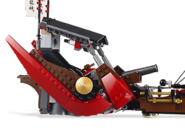 Perła przeznaczenia jest w kolorach: czarnym, piaskowym, ciemnoczerwonym, niebieskim, ciemnozielonym, ciemnopiaskowym, jasnobrązowym, jasnozielonym, czerwonym, jasnoszarym, ciemnoszarym, złotym, ciemnobrązowym, srebrnym i białym. Z przodu łodzi zbudowana jest czerwona głowa smoka, mogąca prawdopodobnie pełnić funkcję taranu. Po jej bokach są dwie kusze. Za głową pojawia się kołowrót z liną od kotwicy. Dalej znajduje się potężny i masywny maszt, są na nim dwa wielkie żagle z różnymi symbolami. Dzięki czarnym linom tworzącym mechanizm po naciśnięciu pewnego elementu w dolnej części statku żagle mogą się składać i rozkładać. Do podstawy masztu przyczepione są cztery srebrne katany. Trochę dalej znajdują się dwie skrytki na broń z dwoma złotymi sztyletami. Na krawędziach okrętu pojawiają się czarno-złote barierki, obie posiadają po jednej kuszy. W dalszej części łodzi są schody na podwyższoną część, w nich znajduje się skrytka na trzy diamenty w kolorze przezroczystym białym. Pierwsza rzecz na podwyższeniu to jedna z głównych broni statku - obrotowa armata, która naprawdę strzela, jej amunicja to cztery czarne kule. Dalej znajduje się zadaszone pomieszczenie, jest tam jedynie koło sterownicze, z tyłu dachu są dwie flagiz nadrukami. Perła przeznaczenia nie jest zwykłym okrętem, lecz statkiem latającym, posiada dwa małe i dwa duże silniki. Mniejsze silniki są małych rozmiarów, posiadają po dwa małe dopalacze, są w tej samej linii co koło sterownicze. Dwa większe silniki są olbrzymich rozmiarów. Posiadają one po dwa wielkie dopalacze, a także osłony, na których widnieją złote japońskie kapelusze. Wszystkie silniki mogą się obracać.