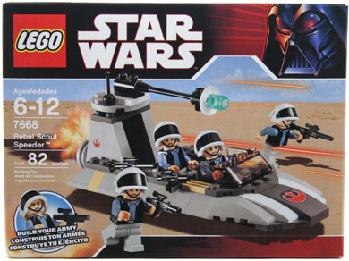 O set 7668 Rebel Scout Speeder foi lançado em 2008 com 82 peças.