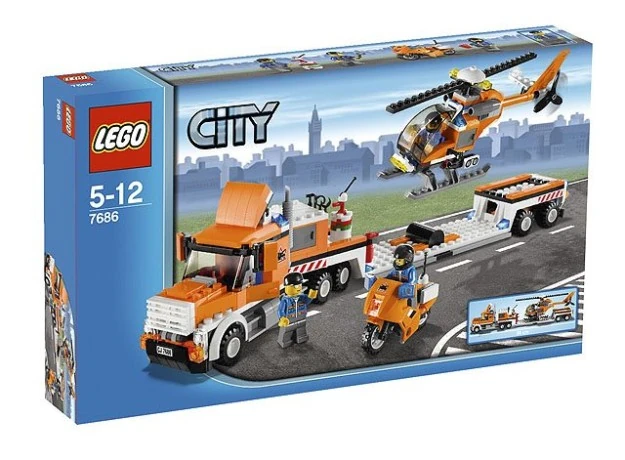 O set 7686 Helicopter Transporter foi lançado em 2009 com 377 peças.