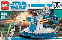 Este set contém um AAT das Guerras Clônicas, ou seja, um Armored Assaul Tank azul, que abre a escotilha.