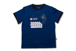 Esta camiseta azul escura com golas pretas, tem uma imagem de 18 stormtroopers e a Estrela da Morte ao fundo.