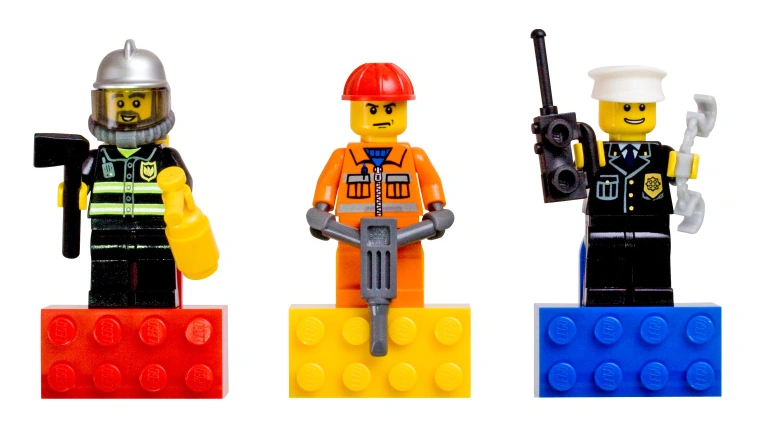 Este set magnético contém três minifiguras City em suas bases magnéticas coloridas.