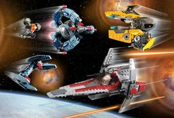 Este set contém uma Jedi Starfighter amarela, do Anakin Skywalker, uma V-Wing, um Dróide Tri-Fighter e um Dróide Abutre.