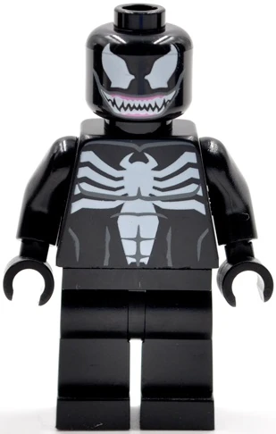 Минифигурка Венома 2013 года полностью чёрная. Принт на его голове изображает два больших белых глаза и злобную улыбку, наполненную острыми зубами. Его торс идентичен торсу Человека-паука в костюме симбиота: на нём изображены мускулы и большой белый символ паука. На спине точно такой же узор, но без мускул. Также на его спину крепится деталь, на которой держатся четыре чёрных щупальца.