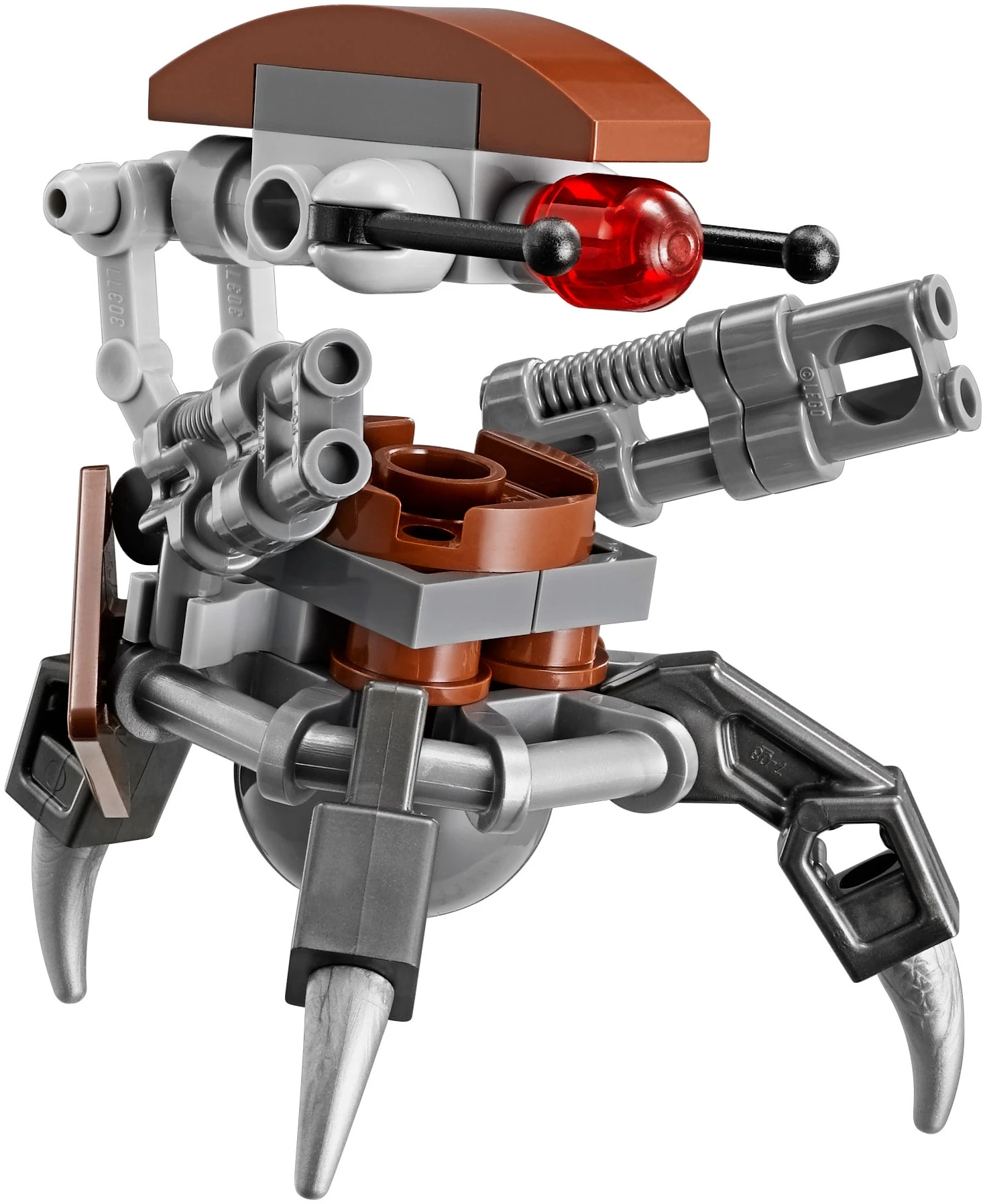 Фигурки дройдек состоят из обычных деталей и формируются примерно по одному шаблону: к центральной основе крепятся три сгибаемых ноги и две руки со спаренными пушками, а затем кривой "позвоночник" с продолговатой головой, на которой помещается круглый красный глаз, две сенсорных антенны и коричневая защитная пластина. Вариант 2002 года активно использовал тонкие детали рук боевых дроидов и прозрачный кирпичик для стабильности ног. Дройдека 2007 года оказалась слишком высокой из-за деталей Technic в основании, а попытка 2011 года - слишком прямой из-за рук Exo-Force в строении скелета. С 2013 года применяется сбалансированная версия, обладающая максимальной подвижностью. В 2018 году в журнале LEGO Star Wars была выпущена обновлëнная версия дройдеки, на данный момент она остаëтся эксклюзивной для данного журнала.