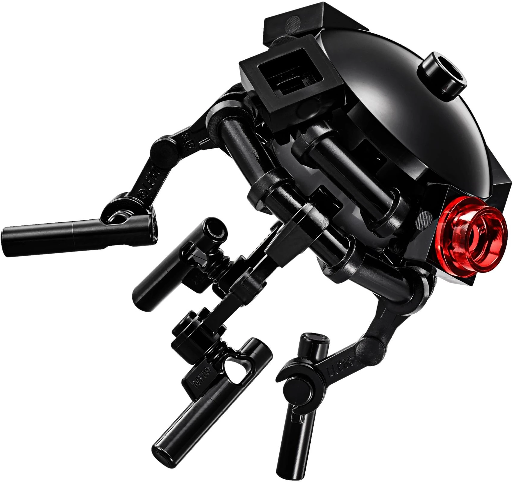 Многие версии дроидов-зондов собраны приблизительно по одному шаблону. В центре - две круглых детали с восемью стержнями по окружности, к верхней крепятся пластинки-скобки с красным круглым глазом, к нижней - четыре тонкие руки боевых дроидов. Венчает конструкцию вогнутая деталь-диск с подвижной антенной. Снизу дроид часто устанавливается на прозрачную подставку-стержень. Версия 2013 года отличается двумя слоями пластинок между сердцевинами, а в 2016 году руки дроида были удлинены посредством стержней в форме буквы Г. Основные детали всегда оставались чёрными, за исключением некоторых серых креплений.