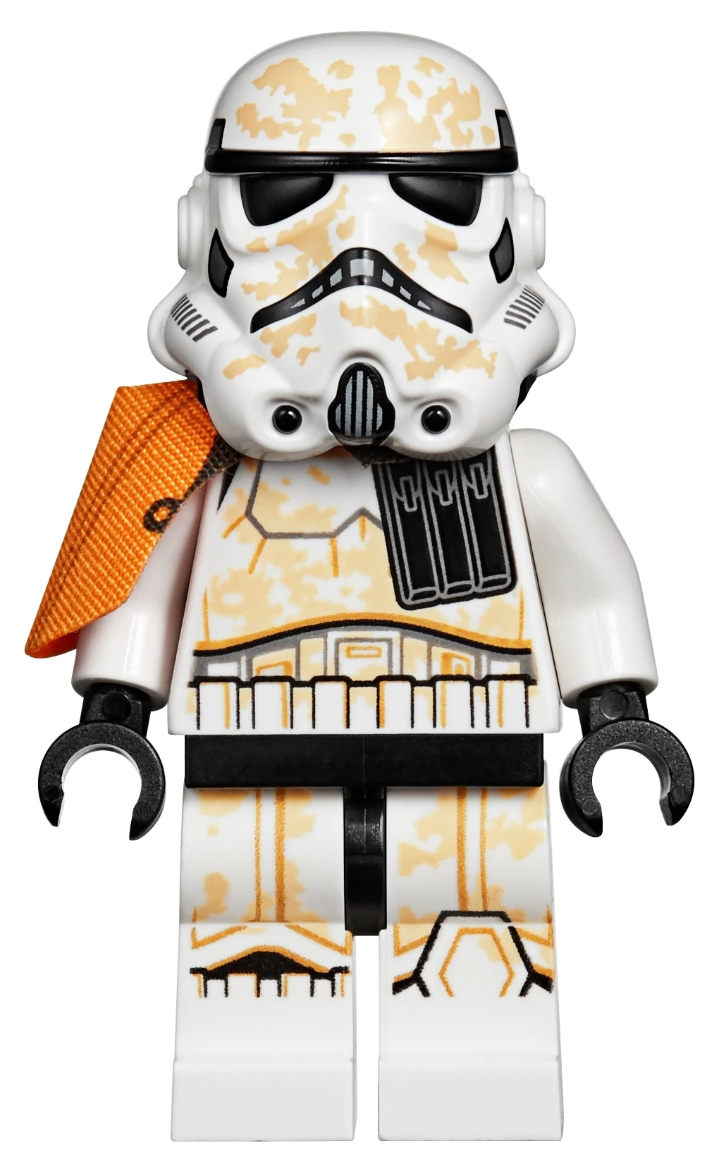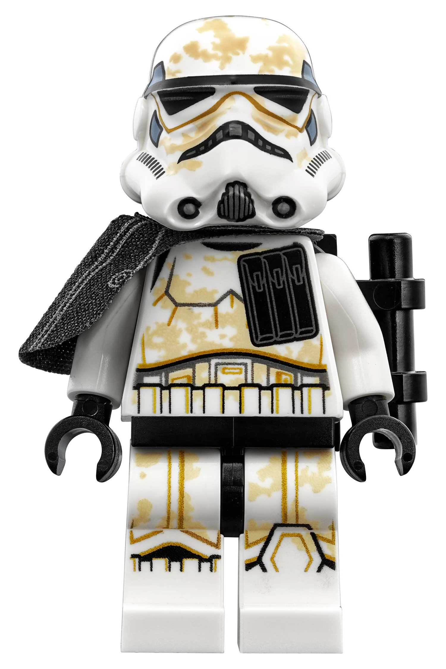 Песчаные штурмовики носили стандартную белую форму штурмовиков, запачканную песком. Некоторые песчаные штурмовики носили наплечники, отличающие их по званию: лидеры отряда носили оранжевые, сержанты - белые, обычные солдаты - чёрные. Песчаные штурмовики носили рюкзаки с водой, конденсаторами и рациями; в виде конструктора их образ передавался с помощью двух деталей световых мечей на креплениях, а с 2018 года их заменила конструкция 2х2, выделяющаяся стержнем слева и деталью подзорной трубы. В 2019 году штурмовики получили изменённый шлем больше и округлее прежнего.