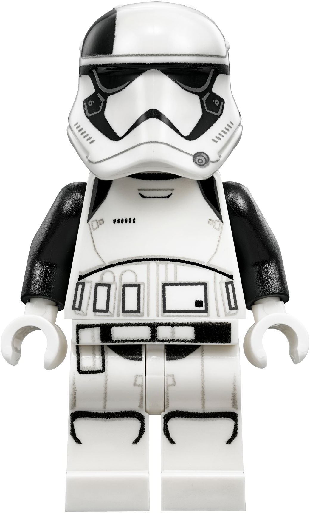 Торс, ноги и кисти штурмовика белые, руки и близкие части брони - чёрные. На торсе и на ногах присутствует принты брони и всяческих элементов. На голову надевается белый шлем с чёрными принтами линз и дыхательных аппаратов, через правую сторону шлема проходит чёрная полоса.