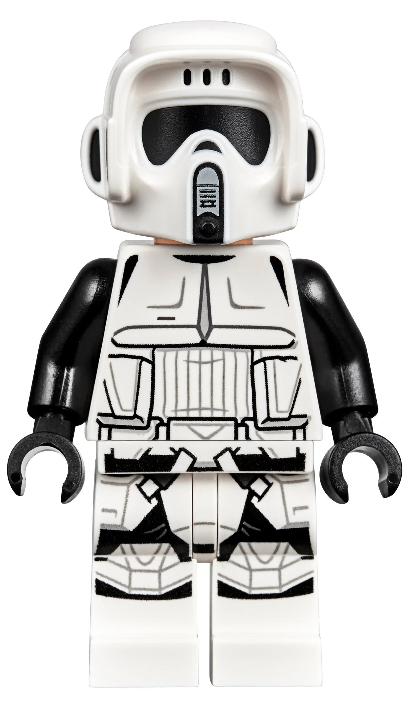 Штурмовики-разведчики носили упрощённую версию брони штурмовиков, лишённую нескольких пластин, особенно на руках и ногах, для большей подвижности, с поясом и дополнительными карманами для экипировки поверх чёрного комбинезона. Шлемы разведчиков существенно отличаются от классических, имея единую линзу, защиту от света вокруг неё и удлинённую дыхательную область. Поначалу шлемы штурмовиков имели прорезь на месте глаз, и чёрную линзу образовала деталь головы, но с 2019 года разведчикам досталась новая деталь шлема с закрашенной линзой, чтобы фигурки могли использовать нормальные головы с лицами. Разведчики, высланные на снежный Хот, отличаются светло-серым цветом комбинезона, заметным на руках и ногах.