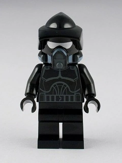 Элитный теневой клон-разведчик носит универсальную броню из чёрных пластин, защищающих всё тело, и пояс поверх чёрной ткани, видной на кистях и плечах. Особый шлем чёрного цвета со светло-синими отметками имеет двойную округлую линзу на глазах, небольшой навес над ней и крупный плоский дыхательный аппарат у рта.