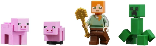 - Настоящий набор для сборки LEGO® Minecraft™ включает популярного персонажа из игры Алекс, знаменитого крипера, двух свиней, аксессуары для Алекс и морковку для свиней.