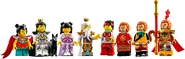 - Восемь минифигурок: Царь обезьян с посохом, Царь-воин, Царь-страж с кубком, Манки Кид с флагом и селфи-палкой, Нэчжа с копьём, Эрлан с копьём, Тайшан Лао-цзюнь с опахалом, Райская фея; плюс фигурка Небесной собаки