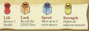 Зелье удачи — позволяет кинуть кубик ещё раз. Появляется в замке Фортаан
